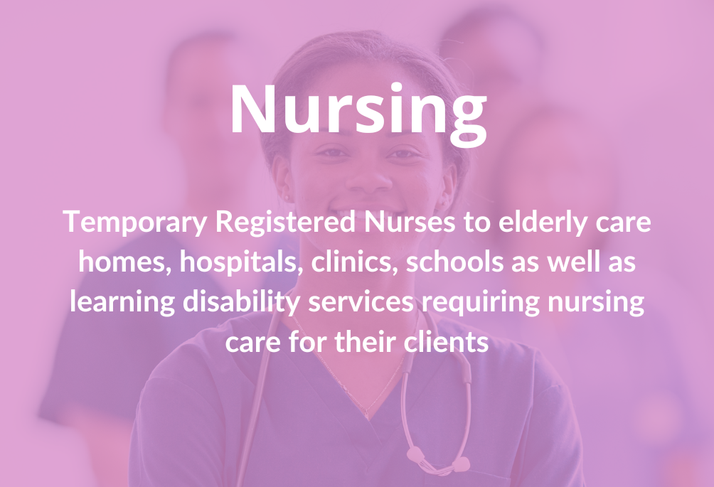 These range from nurses, care staff and support workers to nursery assistants, SEN support workers and many more. We also supply domestic and catering staff within theses areas and can support clients with placing office based personnel.